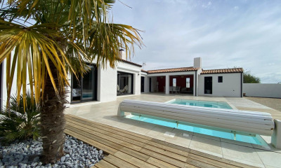 En bordure de la forêt domaniale et à 2 minutes de l'île de Noirmoutier, magnifique maison contemporaine de plain-pied nichée au fond de son impasse. Vous êtes à la recherche de belles prestations et d'un cadre de vie idyllique où règne le repos mais aussi un endroit où recevoir vos amis et votre famille ? Cette maison est la vôtre ! Bel espace de vie avec cheminée et cuisine aménagée de 77 m2, le tout donnant sur la terrasse face à la forêt et sur la véranda avec piscine chauffée de 72 m2. L'espace nuit, se compose d'une suite parentale complète, 2 chambres avec chacune sa salle d'eau, une chambre indépendante et un bureau. Pour votre confort au quotidien, un cellier/arrière-cuisine, un vaste garage et une cave. Visite virtuelle sur rendez-vous. Honoraires inclus de 3.5% TTC à la charge de l'acquéreur. Prix hors honoraires 710 000 euros. Classe énergie B, Classe climat A Montant moyen estimé des dépenses annuelles d'énergie pour un usage standard, établi à partir des prix de l'énergie de l'année 2025 : entre 2010.00 et 2780.00 euros. Les informations sur les risques auxquels ce bien est exposé sont disponibles sur le site Géorisques : georisques.gouv.fr. Votre conseiller UNE AGENCE A NOIRMOUTIER : Gérante - Karine RAIMONDEAU Carte T CPI 8501 2019 000 039 747 RCP MMA IARD n° 120 137 405