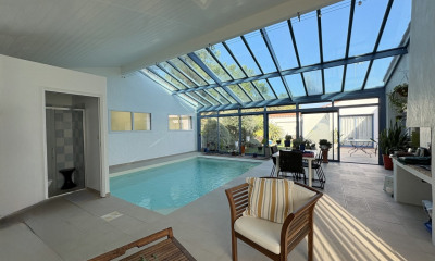 L'agence Duret Immobilier vous présente cette charmante propriété récente et familiale à vendre, située à 2km des plages Barriennes, elle offre de très beaux volumes dans un cadre verdoyant, en lisière de forêt. Une entrée avec rangements dessert une grande pièce de vie lumineuse, vous y trouverez une cuisine ouverte fonctionnelle aménagée et équipée avec accès sur l’extérieur, un séjour avec poutres apparentes et belle hauteur sous plafond, proposant un mode de vie dedans dehors avec ses baies vitrées à galandages, ainsi qu'un salon « cosy » semi-ouvert avec son poêle à bois. Toujours de plain-pied, vous profiterez de trois belles chambres avec placards, d'une salle d’eau ainsi qu'un wc indépendant. Sur une autre aile, une quatrième chambre et sa salle d’eau privative. Pour toujours plus de confort, cette maison bénéficie de beaucoup de rangements notamment dans la buanderie, le local technique ou encore l’arrière-cuisine. Côté extérieur, la maison est implantée sur une jolie parcelle d'environ 1350m2, un portail coulissant vous permettra d'accéder au double garage, et également d'y stationner d'autres véhicules. Un joli extérieur sans entretien est idéalement agencé dispose d'une belle piscine chauffée, ainsi qu'un préau. Vous profiterez de la quiétude des lieux et de sa vue sur la forêt. Vos agences DURET IMMOBILIER vous accueillent téléphoniquement du lundi au samedi de 8h00 à 19h00 sans interruption. JOS