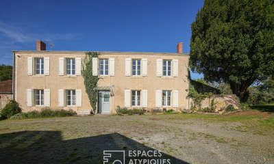 Votre agence 123webimmo l'immobilier au meilleur prix vous présente : À Rosnay, dans une campagne réputée pour ses vignes et ses paysages vallonnés, cette magnifique propriété ancienne allie le charme de la pierre, l'ampleur des volumes et un cadre naturel exceptionnel. Elle séduira les amateurs d'authenticité comme les porteurs de projets de gîte ou chambres d'hôtes. Édifiée sur plus de 7 200 m², la demeure se compose de deux corps de bâtiment accolés, l'un datant du XIIIe siècle, l'autre du XIXe, conférant à l'ensemble une véritable âme. Le terrain, bordé par un ruisseau, abrite un étang d'environ 2 000 m² et offre de nombreux espaces paysagers propices à la détente ou à l'accueil. Le bâtiment principal développe 286 m² habitables. Au rez-de-chaussée, une entrée distribue une vaste pièce de 43 m² en parquet massif actuellement utilisée en chambre et bureau, un salon avec cheminée insert, ainsi qu'une superbe pièce de vie de 35 m² où une cuisine ouverte et une salle à manger conviviale se déploient sous une belle hauteur, autour d'une imposante cheminée à foyer ouvert. Sol en béton ciré, plancher chauffant et ouvertures vers la terrasse renforcent le confort et la modernité de cet espace. Une arrière-cuisine, une salle d'eau avec douche à l'italienne et une chambre avec accès au jardin complètent ce niveau. À l'étage, vous trouverez quatre grandes chambres, dont une superbe chambre de 33 m² avec hauteur sous plafond, ainsi qu'un salon TV cosy pouvant aisément être transformé en cinquième chambre. Une salle d'eau au charme rétro complète ce niveau, offrant confort et modularité selon vos besoins. Les annexes sont nombreuses : un garage fermé de 66 m², une grange ouverte d'environ 70 m², un ancien fournil divisé en deux pièces (20 m² et 11 m², parfaites pour un atelier ou une profession libérale), ainsi qu'un auvent de 30 m². La terrasse exposée plein sud, ouverte sur la nature, appelle au calme et à la contemplation. La maison est également équipée d'un ballon d'eau chaude alimenté par panneaux solaires, assurant toute la production d'eau chaude : une installation à la fois écologique et économique, parfaitement en phase avec l'esprit du lieu. Située à seulement 20 km de La Roche-sur-Yon et 18 km de Luçon, à 30 km des plages de Longeville et de La Tranche, cette propriété offre un équilibre rare entre sérénité rurale et accessibilité. Les environs sont riches en activités nature : balades à pied, à cheval, canoë.. Authenticité, potentiel et qualité de vie sont les maîtres-mots de cette demeure unique, idéale pour une résidence principale, secondaire ou un projet touristique. Visite virtuelle sur demande après un premier contact téléphonique. Pour toute information complémentaire ou organiser une visite, contactez L'Agence ou par email : Les informations sur les risques auxquels ce bien est exposé sont disponibles sur le site du gouvernement :
