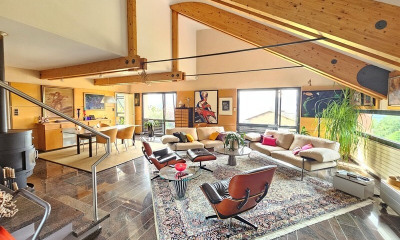 Cette propriété peut convenir à résidence principale ou secondaire. L'entrée, de plain pied, nous conduit vers un très grand volume de vie, dont la luminosité est obtenue par les matériaux choisis (poutres et éléments en bois blond). Le rez-de-chaussée est consacré à l'espace jour : pièce de réception, salon avec poêle à bois, un second salon/boudoir, séjour et cuisine ouverte. Une cheminée à l'âtre ouverte sur la cuisine et le séjour apporte une atmosphère chaleureuse. De la cuisine, on accède à une cave voûtée. Un bureau confidentiel complète la surface habitable du rez-de-chaussée. Un escalier décloisonné dessert un premier niveau dédié à l'espace nuit ; une grande mezzanine lumineuse peut accueilir un salon de lecture ou autre. L'espace nuit : une grande chambre avec mezzanine, une chambre avec coin salon, une chambre, une suite parentale ; une grande salle de bains avec douche, W.C., une salle d'eau. Enfin, un petit salon et un espace bureau. W.C. indépendant. Au rez-de-chaussée, une chambre a été aménagée en chambre d'hôtes, avec salle de bains privative. De grandes terrasses entourent cette propriété, dont une partie couverte, donnant sur un jardin paysagé avec piscine chauffée (pompe à chaleur). Annexes et dépendances : rangement extérieur, chaufferie/buanderie/atelier/stockage. Les propriétaires successifs ont restauré cette propriété avec des prestations haut de gamme et raffinées, préservant les traits architecturaux de l'habitat de montagne. On peut aisément garer 6 voitures : carport et parking jouxtant la ferme. Les informations sur les risques auxquels ce bien est exposé sont disponibles sur le site Georisques : www.georisques.gouv.fr