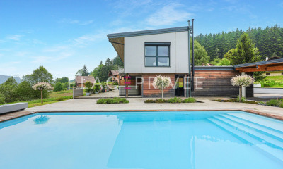 Propriété constituée d'une ferme restaurée et d'un chalet. La ferme restaurée : L'entrée, de plain pied, nous conduit vers un très grand volume de vie, dont la luminosité est obtenue par les matériaux choisis (poutres et éléments en bois blond). Le rez-de-chaussée est consacré à l'espace jour : pièce de réception, salon avec poêle à bois, un second salon/boudoir, séjour et cuisine ouverte. Une cheminée à l'âtre ouverte sur la cuisine et le séjour apporte une atmosphère chaleureuse. De la cuisine, on accède à une cave voûtée. Un bureau confidentiel complète la surface habitable du rez-de-chaussée. Un escalier décloisonné dessert un premier niveau dédié à l'espace nuit ; une grande mezzanine lumineuse peut accueilir un salon de lecture ou autre. L'espace nuit : une grande chambre avec mezzanine, une chambre avec coin salon, une chambre, une suite parentale ; une grande salle de bains avec douche, W.C. ; une salle d'eau. Enfin, un petit salon et un espace bureau. W.C. indépendant. Au rez-de-chaussée, une chambre a été aménagée en chambre d'hôtes, avec salle de bains privative. De grandes terrasses entourent cette propriété, dont une partie couverte, donnant sur un jardin paysagé avec piscine chauffée (pompe à chaleur). Annexes et dépendances : rangement extérieur, chaufferie/buanderie/atelier/stockage. Carport et parking jouxtant la ferme (6 véhicules) Le chalet : Actuellement exploité en location saisonnière. D'une surface d'environ 45m², il se compose, au rez-de-chaussée, d'une pièce principale avec cuisine ouverte, salon/séjour, un coin nuit (2 lits superposés), salle de bains, W.C. À l'étage, la mezzanine constitue la chambre principale. À l'extérieur : terrasse bien exposée, petite pièce d'eau, un emplacement de parking. Le rapport locatif du chalet et la chambre d'hôte (dans l'habitation principale) est de : 24 000 € pour l'année 2024. Ces résultats peuvent être optimisés. Les informations sur les risques auxquels ce bien est exposé sont disponibles sur le site Georisques : www.georisques.gouv.fr