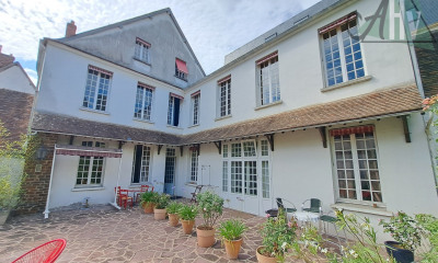 VENDU PAR LEIGNIEL IMMOBILIER, Merci de votre confiance. 1h30 de Paris, 11mn de Sens et de sa gare, dans un hameau au calme complet : rare propriété remarquablement rénovée de 260 m², ses 5 chambres, ses dépendances, nichée au fond d'un vallon, sur son agréable jardin de 6000 m²et sa piscine à vue dominante sur la vallée. A l'abri de tout regard, on pénètre dans "LE CLOS DES BASSES VIGNES " par un grand portail télécommandé. Une grande cour d'accueil dessert tous les bâtiments et permet de garer les véhicules sous un grand auvent. Une terrasse mène à la maison et ouvre sur une généreuse cuisine et son coin repas de 31 m², à la suite, un splendide salon cathédrale de 67 m², parqueté de chêne, avec petit salon avançant sur le jardin, et un coin repas. Poutres discrètes, belle hauteur sous plafond de 6.50m, puits de lumiere et judicieux chauffage au sol sur tous le rez de chaussée permettant une agreable temperature constante. Bureau mezzanine avec escalier moderne en fer forgé abritant un espace salle à manger. Pièce de rangement côté cuisine avec wc salle d'eau et, par un premier escalier, chambre parentale de 40 m² avec ses poutres, son parquet de chêne blond et 3 dressings discrets. Salle d'eau et WC à la suite et sa verrière industrielle dominant le salon. Par un deuxième escalier, à la suite de la mezzanine, large couloir avec lit d'appoint desservant 2 grandes chambres, une salle de bain et un wc. Le palier à la suite dispose d'un escalier en colimaçon permettant d'accéder à 2 autres belles chambres au rez-de-chaussée pour accueillir vos amis. Ces chambres d'amis de 21 m² chacune, disposent aussi d'un accès direct à la cour d'accueil. Cette propriété a fait l'objet d'une rénovation complète en 2010 et en 2020 comprenant chaufffage au sol pour le rez-de-chaussée, isolation périphérique et toiture renforcée, chaudière fioul et chaudière bois Morvan avec basculement automatique, double vitrage et baie vitrée, toitures de la maison et de certaines dépendances, électricité intégrale et remise en peinture, assainissement individuel.. Mélange harmonieux et réussi d'authenticité et de charme avec de beaux matériaux d'origine et d'autres posés récemment, offrant un rare espace intérieur contemporain et naturel. Très grands espaces de vie et de nuit avec ces 5 chambres de 15 à40 m². Faisons maintenant un tour de la cour d'accueil et de ses murs enduits de chaux naturelle terracotta: terrasse ensoleillée pour le printemps devant la cuisine, patio dinatoire couverts et protégé du soleil et des intempéries par des murs épais, première cave voûtée à la température idéale, ancien puits en activité avec sa manivelle sans âge. 2 petites dépendances avec grenier pour vélos et matériel de jardinage. Local technique à usage de chaufferie et de buanderie avec accès jardin. Première grange ouverte de90 m²au sol cimenté pour abriter 4 véhicules, et 2eme grange de même taille pour vos hobbies. Côté jardin, pelouse côté Est, et en gravissant cet ancien coteau viticole (qui comptait jusqu'à 120 ha de vignes avant le phylloxéra) : belle vue dominante sur la campagne, ces prairies et ses nombreuses forêts proches. Agréable piscine récente de 11m x5,5 mavec solarium, pool house, wc et pompe à chaleur, local technique et traitement automatique de l'eau. Autre terrasse avec boulodrome permettant une vue exceptionnelle jusqu'à la vallée de l'Yonne. Verger à la suite avec de nombreux fruitiers. En redescendant, plusieurs caves creusées sous la craie de la colline, autre garage extérieur et massifs de vivace le long des murs extérieurs. Rare petit hameau composé de fermettes et de murets anciens où passe parfois une voiture. Calme olympien avec un rare environnement campagnard et naturel permettant des échappées pédestre ou en vélo à travers les bois avoisinants, le tout à 10 minutes de la civilisation. "LE CLOS DES BASSES VIGNES" est une propriété d'exception, rare à la vente. Elle représente l'alliance parfaite entre modernité et authenticité . Venez découvrir cette demeure unique et offrez-vous le luxe d'une vie au calme en harmonie avec la nature. Nombreuses photos et renseignements sur notre site. Contactez LAURENT SINEAU pour informations. Les informations sur les risques auxquels ce bien est exposé sont disponibles sur le site Géorisques