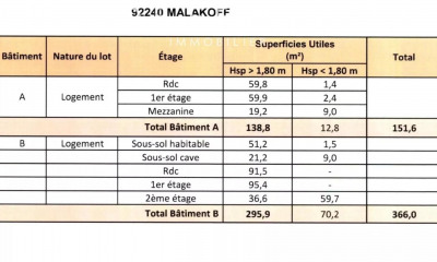 **RARE A LA VENTE MAISON A VENDRE CENTRE DE MALAKOFF** Century 21 Agence Fleurie vous propose à la vente cette maison 6 pièces 4 chambres de 247m2 au sol et actuellement de 147m2 habitable, offrant un potentiel considérable, elle est située à proximité de la mairie et des commerces de Malakoff. Cette maison se compose comme suit : Au rez-de-chaussée : entrée, très grand double séjour avec cheminée, cuisine individuelle, wc séparé et une terrasse végétalisée idéale pour profiter de l'exposition ouest. Au premier étage : un palier desservant deux chambres avec chacune leur point d'eau individuel et un wc séparé. Au deuxième étage : une pièce de vie, deux chambres avec chacune leurs points d'eau et un wc séparé. Aménagement des combles possible avec plus de 2,50m de hauteur sous plafond. Cette maison est située dans une rue pavillonnaire calme, offrant un excellent cadre de vie familial. Les transports en commun sont facilement accessibles, avec notamment la ligne 13 du métro Malakoff /Plateau de Vanves, à seulement 6 minutes à pied, ainsi que plusieurs lignes de bus à proximité. Les familles apprécieront la présence d'établissements d'enseignement de qualité à proximité, tels que des crèches, des écoles maternelles et primaires, ainsi que des établissements d'enseignement supérieur. Le quartier est également animé avec de nombreux restaurants, cafés et commerces à proximité, ainsi que des espaces de loisirs tels que des cinémas, des théâtres et des parcs. Cette maison offre donc un excellent équilibre entre calme et animation, idéal pour ceux qui cherchent un cadre de vie équilibré et familial. Ne manquez pas cette opportunité unique ! Prix : 884000.0 euros, Honoraires charge vendeur. Logement à consommation énergétique excessive : classe F. Montant estimé des dépenses annuelles d'énergie pour un usage standard entre 5000.0 € et 6000.0 €, indexées à l'année 2021 (abonnements compris).