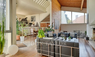A 27 km de Paris, au coeur de la forêt de Montmorency, dans un environnement naturel, privilégié et sécurisé, ce manoir de style Anglo-Normand offre un cadre de vie exceptionnel, proche de toutes commdités. 15 pièces principales, 8 chambres, une écurie pour 7 chevaux, sur un terrain de 2,3 hectares, dont une parcelle de forêt. Il est composé de deux ailes qui peuvent être indépendantes ou non, reliées par une tour. L'ensemble du manoir a fait l'objet d'une rénovation énergétique complète il y a deux ans. Les espaces d'habitation sont climatisés. L'aile principale comprend : - Au rez de chaussée : entrée / cellier, cuisine aménagée, un espace de vie de plus de 100m2, bureau, couloir, WC - A l'étage : un salon en mezzanine, 1 suite parentale avec chambre, salon / dressing, salle de bain avec baignoire et douche, WC, 3 chambres dont une avec salon et couchage en mezzanine. La charpente traditionnelle, en bois canadien, est apparente. La seconde aile comprend : - Au rez-de-chaussée : entrée, 2 chambres, espace de vie de 65 m2 avec cuisine, salle à manger et salon, une pièce pouvant être aménagée en 2 chambres ou 2ème séjour, WC - A l'étage : 1 chambre, 1 suite parentale avec chambre, salon, salle de douche et WC Une écurie de 7 boxes compléte l'ensemble, avec une carrière de travail et l'accès direct à la forêt. Le parc est aménagé avec soin ; arbres, massifs et espaces en herbe sont complétés par des allées permettant la circulation des véhicules pour des accès facilités dans toute la propriété. Prix de vente 1 715 000 euros Prix TTC et Honoraires à charge vendeur TTC Montant estimé des dépenses annuelles d'énergie pour un usage standard : 4 779 euros par an. DPE : D GES : D