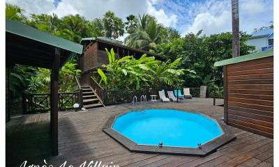 Nichée au fond d’une impasse, au cœur d’un écrin de végétation tropicale, cette authentique villa créole se situe sur les hauteurs de Deshaies, à proximité immédiate de la plage de Grande Anse, tout en bénéficiant d’un environnement calme et préservé. La propriété offre une vue époustouflante sur la baie de Grande Anse et sur l'île de Montserrat, créant un panorama rare et spectaculaire ! Un lieu ou l'on vit au rythme des alizés, entre ciel , mer et nature, dans une atmosphère de sérénité absolue. Une architecture créole pensée pour la vie aux Antilles La maison principale développe une surface habitable de 120 m² répartie sur deux niveaux, et a été conçue pour une vie largement tournée vers l’extérieur, avec de généreux espaces ouverts sur l'extérieur. À l’étage : Un séjour lumineux Une cuisine conviviale Une grande terrasse face à la mer Une chambre avec rangements Une salle de bain Au rez-de-chaussée : 2 chambres, chacune équipée de placards intégrés 1 bureau (pouvant faire office de chambre supplémentaire) 2 salles de bain Toutes les chambres sont climatisées. Un bungalow indépendant Totalement indépendant, le bungalow développe 45 m² et comprend : 1 chambre 1 kitchenette extérieure 1 douche extérieure 1 totale indépendance Parfait pour recevoir famille et amis ou pour un usage locatif Extérieurs & art de vivre Aux Antilles, on vit autant dehors que dedans. La propriété dispose ainsi de 135 m² de terrasses (maison et bungalow), véritables espaces de vie à part entière. Surface habitable totale (maison + bungalow) : 165 m² Surface utile globale (habitable + terrasses) : environ 300 m² Piscine au sel de 11 m x 2,80 m prolongé par un bar convivial qui invite à savourer les fins de journée face à la mer, lorsque la lumière décline et que les couchers de soleil offrent chaque soir un spectacle différent. A la nuit tombée, les éclairages extérieurs révèlent toute la magie de l'endroit. Terrasses ouvertes sur la nature et la mer Buanderie Local technique Station d’épuration individuelle. Stationnement & annexes Garage fermé de 25 m² Carport couvert de 25 m² Confort & equipements Fibre optique Maison vendue meublée et équipée Un lieu singulier La villa a servi de lieu de tournage pour la série Meurtres au Paradis, soulignant son caractère unique et son atmosphère singulière. L’esprit du lieu Une maison créole, élégante et authentique, où l’on vit dedans-dehors toute l’année, bercée par la lumière, la brise marine et la nature environnante. Un refuge tropical discret, rare à la vente, alliant vue mer, charme et authenticité avec un fort potentiel locatif. Un bien d'exception à découvrir sur rendez-vous