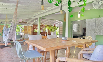 Découvrez cette magnifique villa contemporaine, idéalement située à Saint-François, alliant élégance, confort et fonctionnalité. Dès l’entrée, vous serez séduit par son architecture épurée et sa belle luminosité. La villa s’articule autour d’un patio central agrémenté d’une superbe piscine de 4 × 8 m, véritable cœur de la maison. Elle comprend : Deux chambres indépendantes avec accès extérieur, chacune avec sa salle d’eau privative Une quatrième chambre en lien direct avec le séjour et la cuisine entièrement équipée En rez de jardin, un espace bureau, chambre salle de cinema ou salle de sport indépendant avec WC, idéal pour le télétravail ou accueillir des invités Un séjour lumineux et climatisé, ouvert sur l’extérieur. par de larges baies vitrées en accordeon. Très belle hauteur de plafond Une cuisine moderne entièrement équipée, prolongée par une arrière-cuisine fonctionnelle Trois modules indépendants, offrant de belles perspectives d’usage ou de location La villa est vendue entièrement meublée avec goût, prête à vivre ou à louer immédiatement. Possibilité de rajouter un module chambre supplémentaire. Double parking extérieur Accès à la plage à pied en 10mn par un petit sentier du littoral. Un bien rare dans un secteur prisé, parfait pour une résidence principale, secondaire ou un investissement locatif.