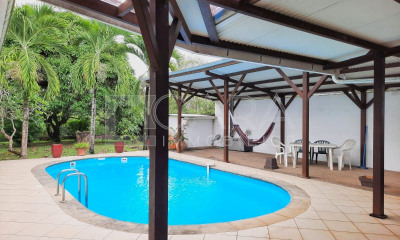 Au sein d'une copropriété, une maison individuelle de type T4 duplex comprenant : - au rez-de-chaussée : un séjour, une cuisine aménagée et équipée, une buanderie, un dégagement, une chambre climatisée avec salle d'eau, un WC et une terrasse - à l'étage : deux chambres climatisées avec balcons, un coin mezzanine et une salle de douche avec WC Jardin d'une superficie de 557 m² environ