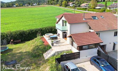 Parfait mariage entre luxe et sérénité, cette propriété unique à Divonne-les-Bains séduit par ses volumes généreux, son élégance intemporelle et une lumière naturelle omniprésente. Nichée au cœur d'un écrin de verdure de 3 627 m², elle offre un cadre de vie paisible et privilégié, en parfaite communion avec la nature environnante. Déployée sur quatre niveaux, cette demeure a bénéficié d'une rénovation raffinée mettant en valeur des matériaux nobles et le respect de son cachet d'origine. Au rez-de-chaussée, un vaste hall d'entrée mène à un salon chaleureux agrémenté d'une bibliothèque et d'une cheminée, tandis qu'un spacieux séjour avec terrasse et une jolie cuisine équipée invitent à des instants de partage uniques et privilégiés. L'étage accueille un espace nuit composé de trois belles chambres, dont une suite parentale avec salle de douche et WC privés, ainsi qu'un bureau et une salle de bains indépendante. Au deuxième étage, de beaux volumes sous les toits offrent un espace cosy avec un salon TV, une chambre mansardée et une salle de bains avec douche et WC. Le rez-de-jardin dévoile un salon TV ou chambre d'amis, une salle de douche et des toilettes visiteurs, complétant ainsi harmonieusement les prestations de la maison. Un garage, un atelier et une cave viennent parfaire ce bien d'exception. Côté extérieur, deux superbes terrasses, l'une attenante au séjour et à la cuisine, l'autre couverte et située au niveau du jardin, offrent des espaces de réception intimistes et conviviaux, idéaux pour partager des moments privilégiés en famille ou entre amis. Le jardin paysager, soigneusement entretenu, apporte une touche de sérénité et de bien-être, propice à la détente et aux promenades en pleine nature. Les atouts de cette propriété : - Rénovation élégante et respectueuse du cachet d'origine - Espaces de vie généreux et baignés de lumière - Deux terrasses offrant des cadres intimistes et raffinés - Grand terrain clos et arboré, véritable havre de paix - Emplacement recherché à proximité de la douane. Un bien d'exception pour les amateurs d'élégance et d'authenticité, offrant un cadre de vie rare et recherché. Les informations sur les risques auxquels ce bien est exposé sont disponibles sur le site Géorisques :