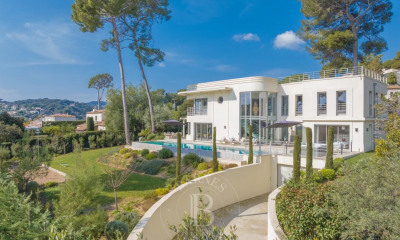 Cette somptueuse propriété d'architecte, au design moderniste des années 80, offre une surface habitable de 262 m² (surface totale de 408 m²). Conçue autour d'un patio, elle se démarque par ses lignes géométriques audacieuses, de volumes généreux et de vastes baies vitrées. La villa se compose de 7 pièces, dont 5 chambres, et bénéficie de larges espaces de vie lumineux. Elle est équipée de la climatisation, de volets électriques, ainsi que de fenêtres en double vitrage garantissant isolation et sérénité. Le bien dispose d'équipements haut de gamme : cheminée, sauna, salle de fitness, salle billiard/cinéma, cave à vin avec contrôle de température. La sécurité est assurée par un dispositif complet incluant portes renforcées, vidéosurveillance et alarme sophistiquée. L'extérieur est pensé pour la détente et la convivialité : une vaste piscine, un barbecue intégré, ainsi qu'un éclairage paysager mettant en valeur le jardin méditerranéen (1.800m²). Cette villa incarne le parfait équilibre entre architecture moderne, confort et raffinement, offrant un véritable havre de paix au cœur d'Antibes.