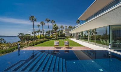 Idéalement située au cœur d’un des plus recherché domaines fermés et sécurisés de Cannes, exceptionnelle villa contemporaine neuve d'environ 450 m² jouissant d'une vue spectaculaire sur la mer . Prestations et finitions de grande qualité, domotique dernier cri, piscine à débordement, garage fermé pour 3 voitures. Co-exclusivité.