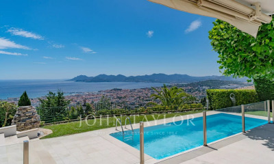 Cannes : située dans un quartier recherché proche du centre et des commodités, cette villa Belle Époque de 1880 offre une superbe vue sur la baie de Cannes, la mer, l'Estérel et le Suquet, exposée sud-ouest. Elle se compose d'une bâtisse principale d'environ 680 m² avec un grand hall d'entrée, 3 salons de réception, une salle à manger, une cuisine professionnelle avec passe-plat, 8 chambres en suite, dont une immense suite parentale avec dressing, salle de bains et terrasse. Une maison de gardien avec 2 chambres, salon et cuisine. Terrain de 2 600 m² avec piscine et pool house. Un grand garage et des parkings complètent ce bien.