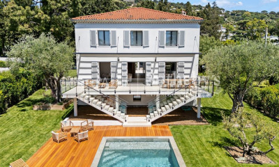 Nichée au cœur du très prisé quartier résidentiel de Cannes Eden, à quelques minutes seulement du centre de Cannes, des plages et du Cap d’Antibes, cette villa de caractère séduit par l’harmonie parfaite entre l’authenticité d’une provençale revisitée et des prestations contemporaines de qualité. D’une surface habitable d’environ 280 m², la propriété offre de généreux espaces de vie baignés de lumière naturelle. La grande hauteur sous plafond et les larges baies vitrées mettent en valeur une vue imprenable sur la Méditerranée, le Cap d’Antibes et les îles de Lérins. Le salon, la salle à manger et la cuisine moderne entièrement équipée avec îlot central s’ouvrent harmonieusement sur les terrasses et le jardin. La villa dispose de cinq chambres, dont une superbe suite parentale de plain-pied avec salle de bains complète et dressing. Les autres chambres, aménagées en suites sur différents niveaux, assurent confort et intimité. Un bureau ainsi qu’un espace télévision en mezzanine viennent compléter l’étage. Un studio indépendant apporte une réelle valeur ajoutée, idéal pour accueillir des invités ou du personnel. À l’extérieur, le jardin paysager dévoile une piscine ,de 11X4.5m, un jacuzzi et un poolhouse convivial avec barbecue dans un cadre paisible et préservé. Un sauna, plusieurs places de stationnement couvertes ainsi que des équipements modernes viennent parfaire cette propriété.