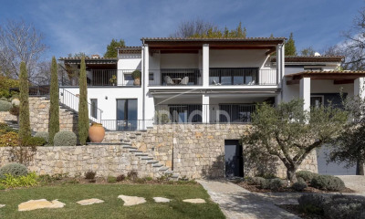 Sur les hauteurs de Cannes, Superbe villa contemporaine récente offrant une vue mer dominante des iles de Lerins jusqu'à l'Estérel. Cette propriété d'une superficie exceptionnelle de 370m2 a été pensée pour laisser entrer la lumière et bénéficier de la vue sur l'extérieur. L'entrée donne sur un vaste séjour avec hauteur sous plafond et grandes baies vitrées, cuisine équipée, chambre de maître en suite, dressing, une autre chambre avec sa salle de douche et toilette. A l'étage, trois autres chambres toutes avec leur salle de douche et toilette, deux grandes terrasses plein Sud et vue mer. En rez-de-jardin, une cuisine équipée d'été, chambre et salle de bain, hamman douche et salle de cinéma. Cette partie peut être un appartement indépendant selon vos besoins. Cave à vin, hamman, jacuzzi, piscine miroir 15X4,5 chauffée au sel avec nage à contre courant, toilette et douche extérieur, spacieux pool-housse. Alarme, domotique, arrosage, sols antidérapants et chauffants dans les salles de bains, etc Enfin, la villa est entièrement végétalisée par des arbres fruitiers, oliviers, et essences méditerranéennes. Possibilité d'un paddle sur le terrain de 2133m2 (devis sur demande) Les informations sur les risques auxquels ce bien est exposé sont disponibles sur le site