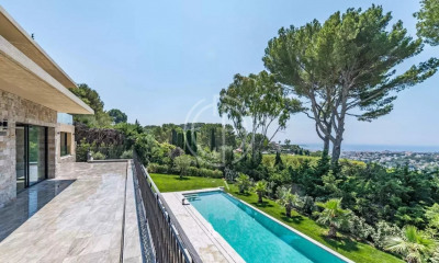 Cannes vue mer : au calme absolu et proche des commodités villa avec piscine bénéficiant d'une vue mer panoramique, offrant : hall d'entrée, vaste et lumineux séjour / salle à manger, cuisine américaine équipée, 4 chambres dont 1 master en suite et 2 salles de bains. Roof top de 120 m². Piscine.Garage. Prestations modernes. Climatisation. Les informations sur les risques auxquels est exposé ce bien sont disponibles sur le site internet de Georisques