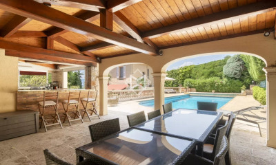 Exclusivité : Située dans le charmant quartier du Cannet, cette somptueuse villa offre 312 m² d'élégance et de confort. Elle comprend 6 chambres spacieuses et 8 pièces aménagées avec goût, idéales pour les familles nombreuses ou les amateurs d'espaces généreux. La villa est entièrement climatisée et équipée de fenêtres coulissantes à double vitrage, assurant un confort optimal en toute saison. En entrant, vous découvrirez un séjour lumineux avec une cheminée moderne, parfait pour des soirées chaleureuses. La cuisine, entièrement équipée, s'ouvre sur une salle à manger accueillante et conviviale. Chaque détail a été pensé pour offrir une expérience de vie luxueuse, de la baignoire balnéo aux systèmes de sécurité avancés comprenant alarme, interphone et vidéosurveillance. À l'extérieur, la propriété continue de séduire avec une piscine étincelante, un système d'irrigation automatique et un éclairage extérieur sophistiqué. Profitez de moments de détente sur la terrasse ou organisez des barbecues dans le jardin impeccablement entretenu. Un abri pour voiture, un terrain de pétanque et un portail électrique complètent ce tableau idyllique, faisant de cette villa une offre exceptionnelle sur le marché immobilier du Cannet.
