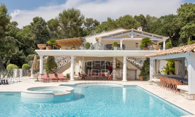 Profitant à la fois d'un jardin plat de plus de 3.5 hectares, du calme et d'une belle vue dégagée jusqu'à la mer, cette élégante demeure de prestige a été entièrement rénovée en 2016 et luxueusement décorée par Ralph Lauren avec son style tout autant chic que raffiné. La propriété est située dans un secteur résidentiel, facile d'accès, à quelques minutes du village. La villa se compose d'une somptueuse entrée, d'un immense double séjour avec cheminée, d'une bibliothèque avec cheminée, d'une grande salle-à-manger, d'un salon TV, d'une cuisine très bien équipée ainsi que de 7 Suites dont une indépendante. En annexe, salle de billard, cinéma, piscine intérieure et garage pour 2 véhicules. Les extérieurs sont agréables et nous retrouvons autour de la villa des terrasses couvertes et non couvertes. L'espace piscine extérieur bénéficie d'un immense pool-house avec cuisine d'été, vestiaires et terrasse couvertes. La piscine est à la hauteur du pool house et mesure 25m X 8m. Facile d'accès, le court de tennis. Le personnel pourra aussi être logé sur place : appartement indépendant, chambre indépendante, possibilité d'une seconde chambre indépendante.