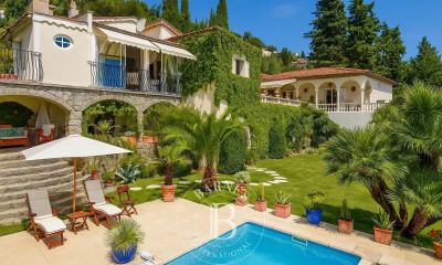 Cette majestueuse demeure compte parmi les plus impressionnantes et authentiques propriétés bourgeoises de la Belle Époque à 35 minutes de Cannes ! La villa ainsi que la maison de gardien ont été entièrement rénovées et restaurées dans le respect intégral du monument historique et répond à toutes les exigences et attentes que l'on peut avoir d'une demeure aussi prestigieuse. Les plus de 900 m² de surface habitable se distinguent par une très grande hauteur sous plafond, de grands espaces, des matériaux nobles comme la pierre de Bourgogne, des peintures murales réalisées par un peintre d'église, de magnifiques balustrades en fer forgé, sans oublier la haute technologie qui se trouve dans cette magnifique demeure ! Une grande piscine à débordement entourée de vastes terrasses et une cuisine d'été entièrement équipée offrent une vue panoramique jusqu'à la mer. Le cœur de cette propriété est le somptueux parc de 5,5 hectares qui n'a rien perdu de son charme du siècle dernier. De véritables trésors que sa source qui alimente les bassins ainsi que le puits qui fournit l'arrosage automatique. Depuis les terrasses conviviales, ensoleillées et ombragées par des tilleuls de 180 ans, vous avez accès à un grand bassin rempli de carpes koï, entouré de buis, cyprès et de magnifiques pins. Le domaine abrite d’innombrables fontaines, une charmante roseraie, une tonnelle idyllique, un « étang d’amour » aux essences rares et exotiques ainsi qu'une remarquable oliveraie. Une atmosphère unique d’une beauté sans égale que seul le temps a su créer !