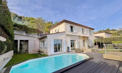 A Mandelieu-La-Napoule, cette charmante VILLA Provençale de 191 m² habitables (hors annexes) avec une très belle vue sur la Baie de Cannes et la mer, vous est proposée à la vente par votre agence immobilière Orpi. Découvrez son caractère et le charme de l'ancien pour cette VILLA idéalement située sur les collines de Mandelieu. Vous apprécierez sa position dominante à moins de 2 km du centre et de toutes les commodités. L'accès aisé à la villa vous permettra de garer facilement plusieurs véhicules et d'en mettre un à l'abri dans un confortable garage. Le hall d'entrée spacieux distribue au Rez de chaussée, un appartement comprenant un séjour ouvrant sur une terrasse et la piscine légèrement en contre-bas, une cuisine ouverte équipée, 2 chambres et une salle d'eau avec wc. Le hall d'entrée commun dessert également, par un escalier confortable, le niveau de vie du logement principal. Ce dernier comprend un double séjour ouvrant sur une terrasse dominant le jardin et la piscine face à la mer, une cuisine équipée, une belle chambre avec son dressing et sa salle de bains avec wc, et un wc invités. A l'étage, vous trouverez une autre grande chambre avec son dressing et sa salle de bains, ainsi qu'un toilette séparé. Vous pourrez bien sûr personnaliser cette jolie villa, mais son état d'entretien actuel vous permettra d'y aménager sans travaux, le temps pour vous de vous en imprégner avant d'y faire les améliorations selon vos goûts et votre style de vie. Ce bien vous est proposé par vos Agences Immobilières Orpi. La Visite Virtuelle 3D est disponible en Agence, mais une visite réelle sera plus parlante pour apprécier ses qualités et son prix justifié. Votre équipe Orpi est disponible par téléphone, privilégiez un appel pour une réponse rapide et efficace, n'hésitez pas. Référence agence : 8852