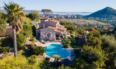 Co-Exclusivité. A l'abri des regards, dans un domaine sécurisé à seulement 10 minutes des plages de la Napoule, et 25 minutes de la Croisette, superbe villa familiale édifiée au coeur d'un parc arboré d'environ 8 000 m2 avec piscine et vue panoramique sur l'Estérel, jusqu'à la mer. Trois appartements en annexes et un vaste garage de la superficie de la maison complètent ce bien. Un havre de paix hors du temps.