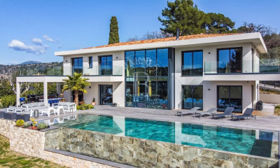 Cette superbe villa située à Mougins dans un quartier prisé offre une vue imprenable ou vous pourrez apprécier les magnifiques couchers de soleil. Elle dispose de nombreux équipements haut de gamme et a été entièrement rénovée récemment. La villa compte six suites, dont une suite parentale, un immense séjour et une très belle cuisine avec de large ouverture sur les terrasses. Chaque suite offre un espace privé et confortable pour les résidents ou les invités, avec des finitions élégantes et une attention particulière aux détails. Le terrain est magnifiquement paysagé et arboré, offrant une atmosphère tranquille et relaxante. Vous pourrez profiter de moments de détente près de la piscine chauffée, entourée d'une vaste terrasse pour prendre le soleil ou vous détendre en admirant la vue. En outre, cette villa dispose d'une salle de cinéma privée où vous pourrez organiser des projections de films en famille ou entre amis. Vous pourrez également profiter d'une très belle salle de sport pour garder un mode de vie actif sans quitter votre maison. La villa comprend également un double garage, offrant un espace de stationnement sécurisé pour vos véhicules. Située à Mougins, cette villa bénéficie d'un emplacement idéal. Mougins est une commune prisée de la Côte d'Azur, réputée pour son charme provençal, ses restaurants gastronomiques et ses superbes terrains de golf. Vous pourrez profiter de la tranquillité de la campagne tout en étant à proximité des commodités et des attractions de la région. En résumé, cette villa offre une expérience de vie luxueuse et confortable, avec des installations modernes et un cadre naturel exceptionnel, idéale pour ceux qui recherchent une résidence principale ou une résidence secondaire dans un environnement prestigieux proche de Cannes et à 30 minutes environ de l'aéroport de Nice.
