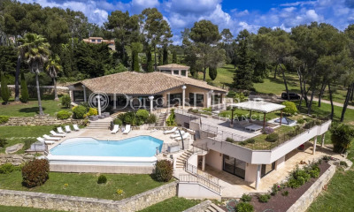 Dans un quartier résidentiel, élégante villa familiale de construction récente, au coeur d'un domaine privé de 200 hectares, composé de 10 propriétés et d’un centre équestre. Sa situation permet de rejoindre à pied l'école internationale. D'une surface habitable de 345 m² environ, la villa se compose d'un très beau hall d'entrée avec toilettes invités et vestiaire, d'une triple réception avec séjour, salle à manger et salon cheminée, d'une vaste cuisine entièrement équipée avec îlot central complétée d'une arrière cuisine/buanderie très fonctionnelle. De plain pied, une grande chambre pouvant servir de bureau également ou d'extension au salon. A l'étage, 4 chambres partageant 2 salles de bains et la chambre de maître en suite avec bureau et salle de bains. Toutes les chambres bénéficient de leur terrasse privative. Un grand dressing complète l'étage. La villa est dotée d'une salle de sport et d'un appartement avec salon, chambre, et salle de douche. Vaste jardin plat accueillant une piscine chauffée et une grand pool house avec cuisine d'été, ainsi qu'un terrain de pétanque. La villa est entièrement climatisée et est doublée d'un chauffage au sol.