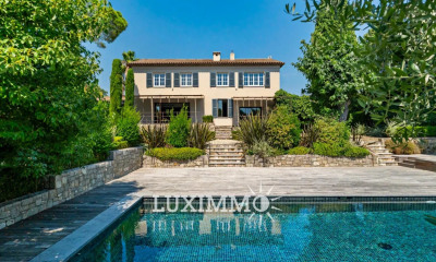 Dans un domaine fermé et recherché, cette villa bénéficie d’un cadre paisible tout en étant idéalement située à proximité immédiate d’un golf de renom, de la Mougins School et de Sophia Antipolis. Elle offre un vaste espace de vie baigné de lumière, comprenant un séjour convivial avec cuisine ouverte, ainsi qu’une suite parentale avec dressing et salle de bains (douche et baignoire). À l’étage, quatre chambres climatisées se partagent une salle de bains et une salle de douche, offrant confort et intimité. Un grand studio indépendant, entièrement climatisé et équipé, complète cette propriété. Doté d’une alcôve pour le couchage, d’une cuisine et d’une salle d’eau, il constitue un espace idéal pour recevoir ou travailler en toute autonomie. Le tout est implanté sur un magnifique terrain plat de 1 800 m², aménagé avec soin. Vous profiterez d’une piscine, d’une cuisine d’été, et d’un parking sécurisé pouvant accueillir plusieurs véhicules. Bénéficiant d’un emplacement privilégié, cette propriété combine à merveille calme et accessibilité : à seulement 15 minutes de Cannes et des plages, et à 20 minutes de l’aéroport de Nice.