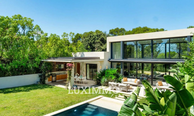 Dans un des domaines les plus résidentiels et sécurisé de Mougins, dans un véritable havre de paix et un écrin de verdure, cette superbe propriété aux prestations de qualité offre une qualité de vie très conviviale avec un espace de vie ouvrant sur une grande terrasse avec la piscine, un pool house, le jardin et le terrain de pétanque. La villa principale d'environ 350 m² présente de très belles pièces de réception, un large salon avec cheminée, une cuisine entièrement équipée ouverte sur la terrasse et 5 chambres en suite dont une très belle suite de maîtres avec salle de bains et petit salon. Elle comprend également un espace gym et un garage. L'appartement d'amis se compose quant à lui d'un séjour avec cuisine et de deux chambres avec salle de douche en suite.