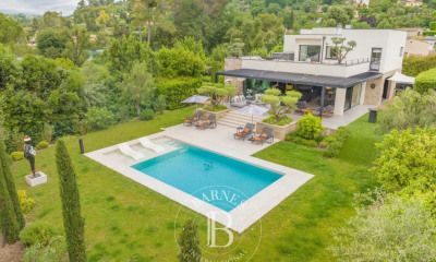 Située dans un domaine résidentiel, au calme, dans un véritable écrin de verdure, cette propriété jouit d'un magnifique parc d'environ 8500 m² magnifiquement complanté d'essences méditerranéennes, offrant une intimité totale, agrémenté d'une piscine chauffée et d'un pool-house aménagé d'une cuisine d'été. D'une superficie d'environ 625 m² la villa de style contemporain offre de généreux et lumineux volumes avec de belles pièces de réception ouvrant sur le jardin et la piscine, six chambres, dont une très belle suite de maître, avec chacune salle de bains ou douche en suite. Elle dispose également de 3 chambres indépendantes, d'une cave à vin, d'un espace sauna et d'un grand garage.