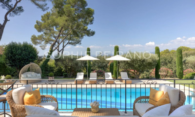 Située dans un des secteurs les plus exclusifs de Mougins, dans un domaine très résidentiel avec une jolie vue sur les collines verdoyantes environnantes. Cette remarquable propriété vient d'être entièrement rénovée dans un esprit chaleureux et typiquement méditerranéen avec des murs blancs traités avec des pigments naturels, des sols en pierre, boiseries et parquets d'aspect brut et naturel. La villa dispose de cinq chambres dont une suite de maîtres avec bureau/dressing, une cave à vin, un très bel espace spa avec salle de sport, sauna et hammam. Une attention très particulière a également été apportée aux espaces extérieurs avec une grande piscine avec pool-house, sur environ 4500 m² de terrain en grande partie plat et planté d'essences méditerranéennes dont les couleurs chatoyantes éclatent sur la blancheur de la façade.