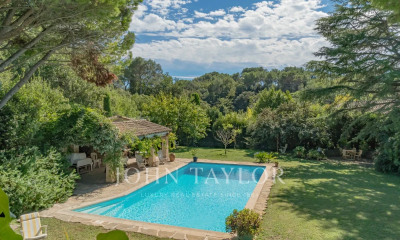 Au cœur de l’un des secteurs les plus prisés de Mougins, cette propriété de prestige se compose d’une magnifique bastide rénovée d’environ 370 m² et d’une maison d’amis indépendante de 102 m², chacune disposant de sa propre piscine, le tout implanté sur un terrain plat et paysager de 6 031 m². La villa principale offre de superbes volumes avec un vaste séjour doté d’une cheminée, une salle à manger élégante, une cuisine indépendante Gaggenau, ainsi que cinq chambres en suite. Un sous-sol de 141 m² complète l’ensemble avec buanderie, cave à vins, chambre avec salle de bains et une salle de cinéma privée. La maison d’amis propose un séjour avec cuisine ouverte, trois chambres avec salles d’eau, ainsi qu’un grand sous-sol aménageable. Un abri pour quatre voitures et un terrain de pétanque viennent parfaire cette propriété rare, idéale pour une résidence familiale ou de réception dans un cadre privilégié.