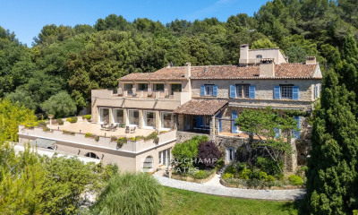Implantée au cœur d’un splendide parc paysager de 2,7 hectares, cette demeure remarquable, conçue par l’architecte Svetchine, illustre à la perfection le charme intemporel de l’architecture méditerranéenne. Dominant l’étang de Fontmerle et idéalement située à quelques minutes des principaux axes, la bastide déploie près de 950 m² sur trois niveaux. Ses volumes généreux, ses lignes équilibrées et ses larges ouvertures offrent une luminosité exceptionnelle et de magnifiques perspectives sur le village historique de Mougins ainsi que sur la nature environnante. L’intérieur propose de vastes espaces à repenser selon ses envies : grandes pièces de réception, piscine intérieure, quatre suites dont une suite parentale avec terrasse privative, ainsi que divers espaces dédiés à l’accueil, tels qu’une salle de réunion, une maison de gardien et plusieurs chambres annexes. Le parc, riche d’essences méditerranéennes et doté d’une piscine de 25 mètres, confère à l’ensemble une atmosphère unique, alliant quiétude, élégance et proximité immédiate des commodités. Une opportunité rare à Mougins, conjuguant signature architecturale, cadre exceptionnel et formidable potentiel de valorisation.