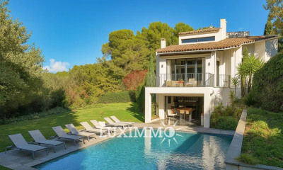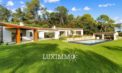 Cette villa située dans un écrin de verdure avec vue sur le vieux village de Mougins a été entièrement rénovée. D'une superficie d'environ 430 m2 se composant d'une entrée, un superbe salon cathédrale avec cheminée et coin bibliothèque, une salle à manger et une grande cuisine avec arrière cuisine. La mezzanine offre un bel espace bureau et une suite avec salle de douche. Le rez de chaussée comprend également une très spacieuse suite de maitres avec salle de bains avec douche et dressing. Au rez de jardin, deux grandes suites d'invités. Vous découvrirez un jardin paysagé de 3500 m2 avec une grande piscine et de nombreuses terrasses. Un garage pour deux véhicules complète cette propriété. Situé à 35 minutes de l'aéroport de Nice et 40 minutes de Monaco. Classe énergie : B (95 kw ) - Classe climat : A (3 kg) / montant estimé des dépenses annuelles d'énergie pour un usage standard : entre 2 637 € et 3 567 € (année de référence 2021). Les informations sur les risques auxquels ce bien est exposé sont disponibles sur le site Géorisques :