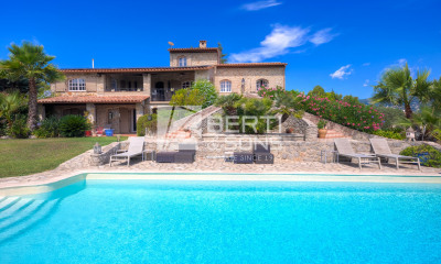 REF: 2018425 Située dans un quartier résidentiel, belle villa provençale lumineuse de Plain pied de 177 m² env sur 2335 m² arboré. aucun vis à vis exposition EST.SUD.OUEST composée 1 hall d'entrée desservant : tres belle cuisine équipée22 m2 séjour salon 50 M2 le tout donnant sur très belle terrasse et piscine traditionnelle, 3 chambres, 2 salles d'eau, W-C ind, R.J: buanderie, 1 chambre, salle d'eau, W-C ind., 1 pièce 20 m2 Divers: garage 53 m2 + garages supplémentaires 14.5 M2 1 abri outils jardin 12 M2 cave, portail auto., climatisation reversible, accés facile ABSENCE D'AMIANTE