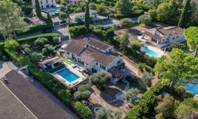 Idéalement située au cœur de Peymeinade, à pied des commerces et du collège, cette villa de standing construite en 2006 a bénéficiée d’une rénovation complète en 2018 avec des matériaux de qualité et des prestations haut de gamme. D’une surface d’environ 190 m², la maison s’implante sur un terrain plat de 1 800 m² et offre un cadre de vie calme, lumineux et verdoyant. Au rez-de-chaussée, vous découvrirez une vaste pièce de vie baignée de lumière, équipée d’une baie vitrée à galandage de 4 mètres, d’une cheminée et d’un éclairage dimmable. La cuisine ouverte, entièrement équipée, est séparée du séjour par une élégante verrière coulissante. Ce niveau comprend également une suite parentale, un bureau et un appartement 2 pièces avec cuisine équipée, salle d’eau et WC indépendant. Cette dépendance aménagée en appartement 2 pièces avec terrasse privative est idéale pour accueillir famille, amis ou générer un revenu locatif. À l’étage, la villa dispose de deux chambres supplémentaires, d’une salle de bain et d’un WC. À l’extérieur, vous profiterez d’une spacieuse terrasse couverte de 45 m² avec cuisine d’été, d’une piscine carrelée et chauffée de 10 x 4 m avec volet roulant intégré, ainsi que d’un jardin sec nécessitant peu d’entretien. La propriété dispose également d’une cave, d’un local technique, d’un portail automatique et de nombreux stationnements (jusqu’à 10 véhicules). Prestations complémentaires : – Maison entièrement climatisée (climatisation réversible) – Huisseries aluminium double vitrage avec volets roulants – Placards dans toutes les pièces – Quartier résidentiel calme - Situation géographique à 10 minutes du centre-ville de Grasse - DPE : B – GES : A - Estimation des coûts annuels : entre 1 500 € et 1 800 € - Taxe foncière : 2 543 €