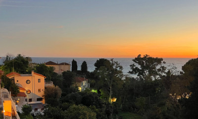 Limitrophe Monaco, Au calme avec vue mer et vue des collines verdoyantes. Un rêve pour une famille avec les enfants. Situé 5 min. de Monaco et 5min. à pieds des plages de Golfe bleu .Exposition sud-ouest. La villa de 110m2 habitables posée sur une parcelle de 1200m 2. Parking intérieur pour 2 voitures. Exposée Sud/Sud-Ouest, avec belle vue dégagée mer, très lumineuse et bien ensoleillée toute la journée, idéalement située dans le quartier de Cabbé, à 5 minutes du centre-ville. Chauffage: Individuel climatiseur réversible électricité. Ballon électrique. Air conditionné, double vitrage, loggia, placards. Clôturé