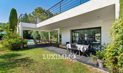 Nichée dans un quartier recherché au calme, à quelques minutes du pittoresque village de Valbonne, nous vous présentons cette propriété spacieuse et unique. Située dans un domaine sécurisé, elle offre un cadre serein, au calme absolu, des vues imprenables sur la vallée de la Brague et une intimité totale, sans aucun vis-à-vis. La villa s'étend sur plus de 500 m² sur un terrain de 3600 m², incluant une charmante maison d'amis de 55 m². Le niveau principal dispose d'un salon et d'une salle à manger spacieux et lumineux avec une cheminée, des plafonds cathédrale et de grandes ouvertures qui baignent l'espace de lumière naturelle. Cet espace s'ouvre sur une belle terrasse avec plusieurs coins salons offrant des vues paysagères magnifiques. La grande cuisine séparée comprend une véranda lumineuse idéale pour les repas, une buanderie et un cellier avec un accès direct au garage. Sur un demi-niveau se trouve une magnifique suite parentale avec une élégante salle de bain en marbre, un dressing et une terrasse privée avec jacuzzi. La propriété comprend six chambres, chacune avec salle de bains, WC et douche attenants, ainsi qu'un sauna, un hammam et une salle de sport. Au même niveau, se trouvent également une salle de cinéma et un grand bureau. Les chambres du rez-de-jardin ont un accès direct au jardin et à la piscine. Un grand sous-sol offre un large espace de rangement. Le jardin paysager est orné de nombreux oliviers et plantes méditerranéennes. La propriété comprend également une maison d'amis avec un salon / salle à manger, une cuisine ouverte, une chambre, et une salle de bains. De plus, la propriété offre un carport couvert pour deux voitures avec des installations de recharge pour véhicules électriques et un espace de stationnement pour jusqu'à huit voitures. À distance de marche du village. Cette villa offre un cadre de vie exceptionnel, avec un accès facile aux meilleures écoles privées et publiques de la région.