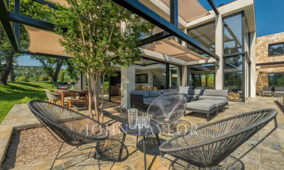 Située dans l’un des domaines résidentiels les plus prisés, à proximité immédiate des écoles et des commerces, cette villa en parfait état vous séduira par son cadre paisible et ses prestations de qualité. Édifiée au cœur d’un superbe terrain plat de 3 776 m² avec piscine, elle offre un cadre de vie idéal pour une famille en quête de confort et de raffinement. Le rez-de-chaussée accueille un vaste séjour avec salle à manger sublimé par un plafond cathédrale, une spacieuse cuisine ouverte, une lingerie, un atelier, ainsi que deux chambres se partageant une salle de douche. À l’étage, deux chambres supplémentaires se partagent une salle de bains, tandis que la suite parentale dispose de sa propre salle d’eau et d’une grande terrasse privative avec vue dégagée. À l’extérieur, une belle cuisine d’été et un abri pour deux voitures viennent compléter ce bien, situé à seulement 30 minutes de l’aéroport international de Nice! Une adresse confidentielle, un cadre privilégié, une villa aux volumes généreux – une opportunité unique à découvrir!
