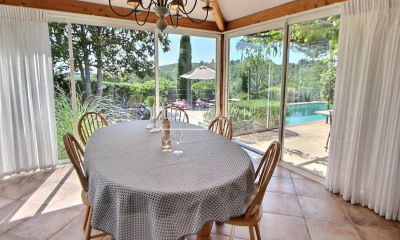 [Découvrez en vidéo cette propriété sur notre site web] Au calme absolu, à seulement quelques minutes du village pittoresque de Valbonne, cette superbe bastide en pierre entièrement rénovée et agrandie offre une alliance parfaite entre charme provençal et modernité contemporaine. Exposée plein sud, la propriété bénéficie d’une belle vue dégagée sur les collines environnantes et d’un ensoleillement optimal tout au long de la journée, créant une atmosphère lumineuse et sereine. Rez-de-chaussée (niveau principal) : Vaste espace de vie avec séjour et cuisine américaine équipée, baigné de lumière grâce à ses larges ouvertures vitrées de chaque côté. Suite parentale avec dressing et salle de bains privative. Trois chambres supplémentaires avec deux salles de bains. Toilettes invités. Accès direct aux espaces extérieurs : terrasses panoramiques, piscine plein sud et vues imprenables sur les collines et la forêt. Rez-de-jardin : Grande suite indépendante avec salle de bains, idéale pour recevoir famille ou invités. Salon polyvalent aménagé en salle de jeux/billard et salle de projection. Espace détente avec sauna et hammam, parfait pour des moments de bien-être. Buanderie et espaces techniques. Extérieurs : Terrain plat de 2 500 m², entièrement paysager et exposé plein sud. Piscine entourée de terrasses pour profiter du soleil et de la tranquillité. Terrain de pétanque pour des instants conviviaux. Accès direct à de nombreux sentiers de promenade et plusieurs places de stationnement. Cette propriété conjugue prestations haut de gamme, cadre verdoyant et proximité immédiate de Valbonne Village, offrant un art de vivre exceptionnel sur la Côte d’Azur. Contactez-nous dès aujourd’hui pour organiser une visite et découvrir ce bien rare et élégant.