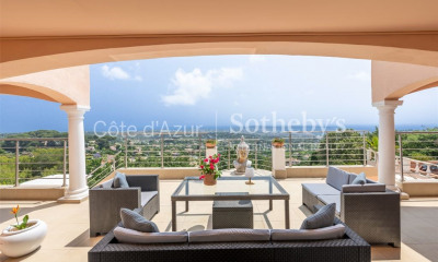 Propriété de charme avec potentiel constructible, entre Antibes et Cannes Idéalement située dans un environnement calme et résidentiel à la lisière d'Antibes, à seulement quelques minutes de Cannes et des plages de Golfe-Juan, cette propriété rare développe environ 300 m² habitables sur un terrain de plus de 6 500 m², à l'abri des regards, au fond d'un chemin privé. Entourée d'une végétation méditerranéenne soignée, la villa principale se compose de plusieurs espaces de vie confortables : un salon cathédrale avec cheminée, une cuisine de style provençal, ainsi que trois chambres avec salles de bains en suite. Une dépendance avec accès indépendant abrite l'une des chambres, idéale pour recevoir en toute autonomie. Un appartement séparé situé en rez-de-jardin vient compléter l'ensemble. Il comprend une pièce à vivre avec cuisine ouverte, une chambre et une salle d'eau, parfait pour un usage familial ou de service. Les matériaux d'origine – tomettes, poutres apparentes, volets bois – confèrent à la villa un charme authentique. L'architecture s'organise autour d'une tourelle d'entrée, élément distinctif de la propriété. Le jardin en restanques, ponctué de murs en pierre sèche, propose de multiples aménagements : potager, terrain de pétanque, pergola avec cuisine d'été, bambouseraie, ainsi qu'un majestueux pin parasol au cœur de la parcelle. Une piscine à débordement de 10 x 5 mètres, parfaitement intégrée dans l'environnement, surplombe un espace constructible. Celui-ci peut accueillir une seconde villa ou un pool house, un avantage rare dans ce secteur recherché. À proximité immédiate des commodités, à 2 km des plages, 10 minutes du centre de Cannes et 20 km de l'aéroport international de Nice, cette propriété présente un excellent potentiel, tant pour une résidence principale ou secondaire que pour un projet immobilier à forte valeur ajoutée. Proposée par Côte d'Azur Sotheby's International Realty, spécialiste de l'immobilier de prestige sur la Côte d'Azur. Nous restons à votre disposition pour toute information complémentaire ou pour organiser une visite confidentielle.