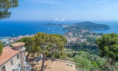 Magnificent 2,000 m2 property with a 250 m2 light-filled villa from the 1960s. The villa is currently 30 meters wide and offers one of the very best panoramic views of the Côte d'Azur, Nice, Villefranche, Beaulieu, and the harbor, all of which can be reached in a few minutes. Garage for 2 vehicles and parking spaces. The 42-meter-wide plot is ideal for building a 400 m² villa.