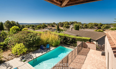 Marjorie MARTY +33(0)6/07/16/71/20 vous propose en Exclusivité cette pépite : Nichée dans un écrin de verdure au coeur d' un quartier résidentiel calme, sur les hauteurs de la ville, cette maison d'architecte des années 80 offre de beaux volumes et des prestations haut de gamme. Elle bénéficie d'une vue dégagée sur la ville avec, en toile de fond, les collines des Corbières ainsi que la chaîne des Pyrénées orientales et ariègeoises. L'entrée s'ouvre sur un hall généreux, des espaces de vie en demi-niveaux distribuent un salon, une vaste salle à manger, un espace lecture devant une cheminée avec insert, une cuisine séparée aux matériaux nobles : cuivre, grès de très belle facture, une buanderie. Le coin nuit, au sol en parquet massif Point de Hongrie, développant quatre chambres et deux salles d'eau, une suite parentale , sa salle de bains et de nombreux rangements, complète le rez-de-jardin. A l'étage une mezzanine accueille un écrin de détente et donne accès aux combles et à une terrasse couverte. L'apport calorifique et la climatisation sont assurés par une pompe à chaleur reliée à des splits. A l'extérieur, la propriété s'ouvre sur un parc arboré d'environ 4000 m2 bénéficiant d'un forage, d'une piscine spacieuse (13* 6,5 m) récemment rénovée, sécurisée, avec pool house bâti, d'un confortable carport maçonné prévu pour plusieurs véhicules , campings cars ou bateau et d'un local technique. En contrebas, un terrain constructible d'environ 700 m2, inclus dans le prix et estimé à 93 000 euros vient renforcer l'attractivité de l'ensemble. Une opportunité précieuse, modulable selon le projet de l'acquéreur : extension patrimoniale, revente ou dissociation à l'acquisition. Ce bien rare se distingue par sa signature architecturale soignée, sa surface, son vaste terrain, sa situation privilégiée ainsi que par ses nombreuses possibilités d'évolution. Une propriété singulière à fort potentiel ! DPE: C - GES: A Montant estimé des dépenses annuelles d'énergie pour un usage standard entre 2220 et 3050 euros indexées aux années 2021, 2022 et 2023 . Les risques auxquels ce bien est exposé sont consultables sur le site: Taxe foncière : 3660 euros (maison), 310 euros (terrain de 700 m2 environ) Son prix : 580 000 euros dont 20 000 euros d'honoraires d'agence charge acquéreur compris , soit 560 000 euros nets vendeur. Pour visiter et vous accompagner dans votre projet, contactez Marjorie MARTY, ou, par courriel à . Selon l'article L.561.5 du Code Monétaire et Financier, pour l'organisation de la visite, la présentation d'une pièce d'identité vous sera demandée. Cette présente annonce a été rédigée sous la responsabilité éditoriale de Marjorie MARTY agissant sous le statut d'agent commercial immatriculé au RSAC NARBONNE 447 664 780 auprès de SAS PROPRIETES PRIVEES, au capital de 44 920 euros, ZAC LE CHÊNE FERRÉ - 44 ALLÉE DES CINQ CONTINENTS 44120 VERTOU; SIRET 487 624 777 00040, RCS Nantes. Carte Professionnelle Transactions sur immeubles et fonds de commerce (T) et Gestion immobilière (G) n°CPI 4401 2016 000 010 388 délivrée par la CCI Nantes - Saint Nazaire. Compte séquestre n°30932508467 BPA SAINT-SEBASTIEN-SUR-LOIRE (44230). Garantie GALIAN-SMABTP - 89 rue de la Boétie, 75008 Paris - n°28137 J pour 2 000 000 euros pour T et 120 000 euros pour G. Assurance responsabilité civile professionnelle par GALIAN-SMABTP n° de police 28137.J Mandat réf : 434205MMAR - Le professionnel garantit et sécurise votre projet immobilier. (3.57 % honoraires TTC à la charge de l'acquéreur.) Marjorie MARTY (EI) Agent Commercial - Numéro RSAC : NARBONNE 447 664 780 - .