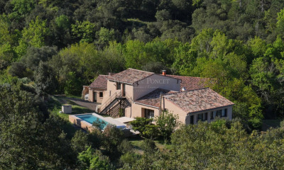 SITUATION : À côté d'un charmant village typique, sans vis-à-vis ni nuisance, à 15 km de Limoux et 30 km au sud de Carcassonne et son aéroport, 1h30 de l'aéroport de Toulouse. Nichée dans un écrin de verdure de 21 hectares. L'endroit se prête parfaitement à la détente, loin du stress quotidien : les terres entourant la bâtisse, garantissent un calme absolu dans un environnement très sauvage. Un grand jardin paysager a été aménagé avec environ 1000 plantes ! des pelouses, un verger, un étang (1000 m² avec carpes Koï) accompagné d'une belle piscine avec vue imprenable sur la vallée. Des prairies et des bois parsemés de sentiers de promenades, complètent la propriété. BÂTIMENTS : Orientés vers le sud, tous les espaces de vie ont été rénovés en 2016 avec goût et qualité. Une maison principale de 168 m2 avec pierres apparentes sur 2 niveaux, pouvant être portée à 305 m2 en y incorporant l'espace bureau, le studio et 1 appartement (pouvant communiquer) 4 appartements allant de 67 à 100 m2 4 autres chambres en suite de 25 à 31 m2 Une pièce de 59 m2 (avec cuisine) pouvant servir de salon d'été, espace de jeux, salle de fitness… Un espace bureau de 27 m2 Un studio de 40 m2 Des panneaux photovoltaïques permettent de compenser la consommation électrique de la propriété. Une grande partie de la rénovation a été réalisée dans une optique de réduction de la consommation d'énergie : isolation renforcée, fenêtres triple-vitrage, interrupteurs à carte, chauffage/climatisation à température bloquée et contacts d'arrêt sur les portes et fenêtres, coffrets électriques individuels, chauffe-eaux individuels, et chauffage solaire pour l'eau de la piscine ! Les DPE sont majoritairement classés B et une partie en C ! Les EXTÉRIEURS : Une piscine au sel de 9 x 4 m avec volet électrique et 120 m2 de plages attenantes et son local technique de 80 m2. Un garage 2 voitures de 30 m2, un grand hangar fermé en bois de 75m2, un parking pour 10 voitures avec 2 bornes de recharge pour véhicules électriques. EAU : La propriété est alimentée par une source très abondante située à 2km avec droit de puisage officiel. La récupération d'eau de pluie est bien organisée puis stockée. CE QUE NOUS PENSONS : Cette propriété allie confort moderne et matériaux authentiques. Elle est parfaite pour une grande maison de vacances en famille, avec la possibilité de louer les appartements et les chambres en suite. CONTACT Hélène DESSORT :