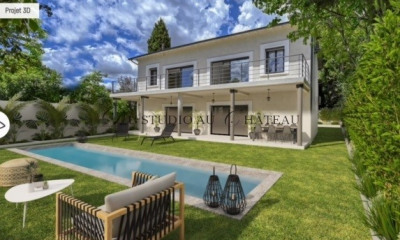 Co-exclusivité Daniel FEAU : A pied du centre d'Aix en Provence, au calme, dans une rue discrète, maison moderne construite en 2016 de 225m2 habitables sur un jardin paysager de 746m2. Architecture singulière, piscine sur le toit sans vis-à-vis, cette maison est unique à Aix en Provence. Elle s'organise comme suit : Espace d'entrée confortable, un salon de 60m2 tourné vers l'extérieur grâce aux larges baies vitrées donnant sur le patio, une salle à manger et une cuisine de 20m2. De plain pied, deux chambres avec salles d'eau privative et accès direct sur l'extérieur. A l'étage, par un élégant escalier en bois, une chambre de 25m2 avec salle de bains privative et une quatrième chambre pouvant être utilisée en bureau avec sa salle d'eau. Accès direct sur la terrasse et la piscine. Auvent pour plusieurs voitures. Rare à la vente.