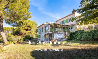 Aix-en-Provence. A seulement quelques minutes du centre historique, magnifique villa d'architecte neuve de 240 m² habitables, édifiée sur un terrain clos et paysager de 1 200 m², parfaitement au calme et à l'abri des regards. Conçue pour sublimer la lumière, la villa bénéficie d'une exposition plein Sud et d'une vue dégagée sur la nature. Le cœur de la maison s'articule autour d'un salon-séjour de 93 m², aux volumes généreux et raffinés : parquet en chêne massif, baies vitrées à galandage et brise-soleil orientables. L'élégante cuisine américaine s'intègre harmonieusement à cet espace convivial et fonctionnel. L'espace nuit propose une suite parentale de plain-pied avec dressing et sa salle d'eau . À l'étage : un bureau avec vue dominante, une seconde suite avec dressing et salle d'eau, ainsi que deux autres chambres disposant chacune de leur salle d'eau privative. Le jardin paysager a été pensé comme un écrin de verdure, prolongement naturel de la maison : terrasse en Ipé, piscine au sel de 10 x 3 m et son pool-house modulable en salle de sport, ou bureau. Matériaux nobles et confort absolu: chêne massif, marbre, plancher chauffant/rafraîchissant par pompe à chaleur, équipements photovoltaïques, alarme périmétrique et sécurité renforcée. Double garage de 40 m² avec bornes de recharge électrique et accès direct à la propriété. Un bien d'exception, alliant lignes contemporaines, prestations haut de gamme et qualité de vie incomparable au cœur de la Provence. Idéalement située, la villa bénéficie d'un accès immédiat aux transports (bus), à seulement 15 minutes de la gare TGV , 20 mn de l'aéroport Marseille-Provence. Nathalie Normand /