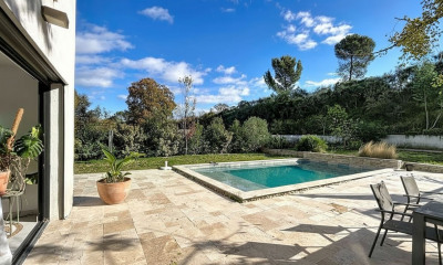 Le groupe Nicolas Staes vous présente à la vente sur la commune d'Aix-en-Provence au nord proche du village de meyrargues, cette villa d'architecte récente de plain pied au calme absolu, dans un environnement naturel sans nuisances. D'une superficie de 150 m2 habitable, édifiée sur un terrain de 2600m2 clôturé, arboré avec piscine à débordement. La villa développe un large séjour ouvert avec cuisine et ilot central, donnant sur une belle terrasse avec pergolas bioclimatique. Elle comprend 4 chambres, un garage de 50 m2, cellier. Prix honoraires inclus. Contact Philippe Chabanne :