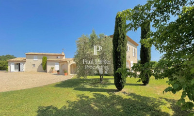 Située à 10 minutes du centre d’Aix en Provence, au nord, proche du quartier des Platanes et avec un accès facile aux réseaux autoroutiers, dans un environnement de campagne de qualité, maison d’architecture provençale construite en 1999 et entièrement revisitée en 2022 afin de créer une habitation contemporaine de 224,04m2 habitables + 24,69m2 d'appartement indépendant soit 248,73m2 habitables + 37,84m2 de garage contiguë sur un très joli terrain plat et arboré de 4225 m2 avec piscine. Cette maison très lumineuse, s'ouvre sur une entrée avec un vestiaire, une vaste pièce de réception de 53,92m2 avec une hauteur sous plafond notable, une salle à manger, une cuisine ouverte sur le salon bénéficiant d'une très belle vue sur le jardin au Sud et au Nord sur un champ, un cellier et un accès direct au garage. Dans l'espace nuit, au rez-de-chaussée, trois suites avec salle de bains et deux suites à l'étage dont une master avec terrasse solarium de 13,88m2 et son dressing. Un appartement indépendant entièrement équipé complète ce bien. Le parc est arboré et bénéficie de nombreuse essences méditerranéennes. Les prestations sont de qualité, climatisation, double vitrage, une maison techniquement neuve avec les garanties afférentes. Bus à pied pour les écoles alentours.