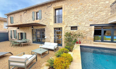 Charmante villa en vente à Saint-Rémy-de-Provence proche du centre-ville. Construite en 2013, cette élégante maison offre une surface habitable de 101m² répartie sur deux niveaux et un terrain de 350m² pour profiter du doux climat provençal. Orientée plein sud et attenant à un autre habitation d'un côté seulement, elle propose un parfait compromis entre intimité et sociabilité. Le confort interne est excellent, avec une cuisine américaine équipée et disposant d'un large et convivial ilôt central, un lumineux séjour avec mur en pierre et large baie donnant vue sur le jardin et la piscine, un système de chauffage par pompe à chaleur. La maison dispose de trois chambres spacieuses, dont une suite de plain-pied avec sa propre salle d'eau et ses deux dressings ! Une salle de bain à l'étage pour les deux autres chambres. Coté Jardin, vous profiterez également de deux terrasses, une piscine de 6,3x3,3m pour des moments de détente sous le soleil du Sud. L'aménagement du jardin paysagé est réussi et plein de charme sans trop d'entretien, arrosage automatique, dallage, petite allée, pelouse, arbres, murs en pierre, treille en fer.. tout le monde trouvera sa place ou son coin d'intimité dans le jardin. En termes d'aménagement, cette maison offre diverses prestations de qualité : une chambre de plain-pied, double vitrage, des volets électriques et un store au sud, un garage avec de nombreux rangements et une buanderie. Ne manquez pas cette occasion de vivre dans une maison clé en main, dans un petit écrin de verdure à deux pas du centre-ville. Saint-Rémy-de-Provence offre un cadre de vie idéal, charmant et provençal. Quartier à l'architecture typique du Sud, maisons anciennes et allées de platanes tout proches des petits commerces, des restaurants et les établissements de santé. Pas besoin de la voiture pour aller au marché hebdomadaire du mercredi ! Cette maison est le pied à terre idéal, charmante et sans trop d'entretien offrant un accès facile au reste de la ville de Saint-Rémy-de-Provence.