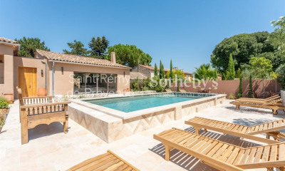 A quelques minutes à pieds du centre du village de Saint Rémy de Provence se trouve cette bâtisse en pierres de 230m² bénéficiant d'une rénovation de haute qualité : la valorisation de matériaux anciens se mêle subtilement aux matières naturelles et nobles, chaque détail a été pensé pour que charme, standing et prestations premium soient au rendez-vous.. Ce Mas de ville s'aborde par une cour intérieure d'où l'on profite de la magnifique façade en pierres apparentes, d'une treille pour ombrager la terrasse extérieure et d'un bassin tout cela complété de bordures en pierres, fontaine, végétaux & éclairage extérieur … La maison propose deux volumes de réception principaux s'ouvrant toujours sur la cour intérieure : Tout d'abord une cuisine dînatoire haut de gamme où bois brut, plan de travail en marbre et zelliges s'associent parfaitement aux pierres apparentes. Ensuite, un généreux et magnifique double séjour avec cheminée. En RDC, une superbe suite avec sa salle bains qui offre aussi une vue et une ouverture vers l'extérieur. On accède à l'étage par un escalier suspendu en fer et bois pour y découvrir 1 suite avec salle bains / douche, dressing & terrasse privée, 1 autre suite avec salle de douche et 2 chambres se partageant 1 salle de douche. Enfin, un grand dressing. Pierres, plafonds en bois et parefeuille, portes anciennes et salles de bains exceptionnelles sont à découvrir. Le savoir faire des artisans de talent se conjugue aux meilleures technologies en terme de rénovation et placent ce bien comme un produit haut de gamme rare sur le marché immobilier des Alpilles. 2 places de stationnement privées.