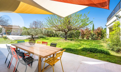 Dans un secteur recherché, à seulement quelques pas du centre-ville et des Alpilles, cette maison de 155 m² bénéficie d’un environnement calme et résidentiel. Implantée sur un terrain clos et paysagé de 1 590 m², elle offre un cadre de vie agréable. L’intérieur comprend un séjour avec salle à manger et une cuisine ouverte, un double salon, une chambre de plain-pied avec salle de bains attenante. Une cheminée équipée d’un poêle apporte une ambiance chaleureuse au cœur des pièces de vie. À l’étage, trois chambres supplémentaires et une seconde salle d’eau complètent l’espace nuit. Le jardin accueille une piscine ainsi qu’une verrière, qui enrichissent les extérieurs. Le terrain présente un réel potentiel, avec la possibilité d’agrandir la maison ou de détacher une parcelle constructible d’environ 600 m². Son emplacement permet de profiter à la fois du calme d’un quartier résidentiel et de la proximité immédiate des commerces, des écoles et des sentiers menant aux Alpilles. Un bien équilibré, évolutif et porteur de belles perspectives. Maison à vendre à Saint-Rémy-de-Provence
