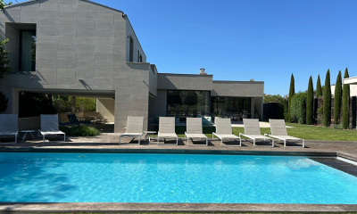 Emplacement idéal Située sur le versant sud de Saint-Rémy-de-Provence, dans un secteur très recherché, cette maison en pierre de charme bénéficie d'un site exceptionnel : à la fois à pied du centre du village et au départ direct des promenades dans les Alpilles. La vue à 180° sur les oliviers et les Alpilles est absolument imprenable. Proposée à la vente par L'Agence de Saint-Rémy, spécialiste des biens de charme et propriétés de prestige en Provence, cette maison marie avec élégance architecture provençale et prestations contemporaines haut de gamme. Dès l'entrée, un vaste hall avec vestiaire accueille les visiteurs et ouvre sur un séjour cathédral baigné de lumière, orné de poutres anciennes et d'une cheminée double-face réchauffant à la fois le salon et la cuisine-salle à manger. Les matériaux nobles ? pierre, bois, enduits naturels ? confèrent à l'ensemble une atmosphère authentique et raffinée, typique des maisons de charme en Provence. La cuisine équipée s'ouvre sur une grande terrasse couverte orientée plein sud, face à la piscine neuve et à la vue spectaculaire sur les Alpilles. Le rez-de-chaussée accueille trois vastes suites, chacune disposant de sa salle de bains privative et d'un aménagement soigné. L'étage abrite une suite principale suspendue au-dessus des champs d'oliviers, avec une vue exceptionnelle, grande salle de bain et dressing. Deux pièces complémentaires offrent la possibilité d'aménager une salle de sport, un bureau ou un espace invités, tandis qu'un grand garage complète les lieux. Le terrain clos et paysagé de 2 600 m² est en cours d'aménagement. Il abrite une piscine au sel de 14 x 4,5 m, plusieurs terrasses, et de beaux espaces ombragés pour profiter du calme et du soleil provençal. L'ensemble est neuf, sous garantie décennale, et réalisé avec un souci constant du détail, du confort et de l'élégance. Cette propriété de charme à vendre à Saint-Rémy-de-Provence représente l'essence même de l'art de vivre provençal : lumière, authenticité, raffinement et douceur de vivre. Un bien unique sur le marché, présenté par L'Agence de Saint-Rémy, votre agence immobilière à Saint-Rémy-de-Provence spécialisée dans les biens de charme et les propriétés d'exception en Provence.